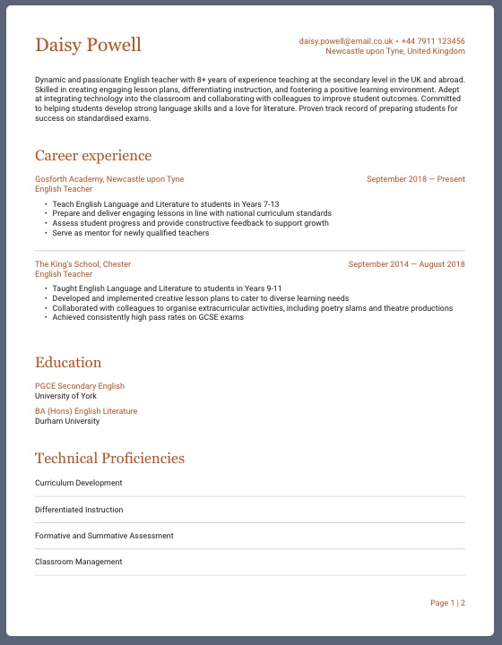 - Different templates and styles: With a CV builder, you can quickly try different styles without having to start over each time, saving you valuable time—and stress.