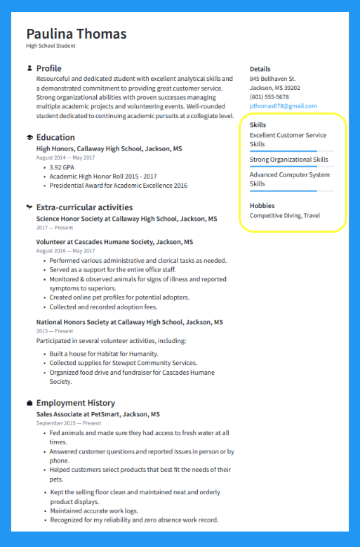 If you don’t have work experience, focus on the transferable skills you’ve gained from school, internships, or volunteer work. These skills might include teamwork, communication, time management, and organization.